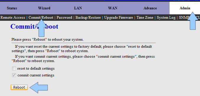Перезагрузка Для сохранения настроек перейдите в раздел Admin - Commit